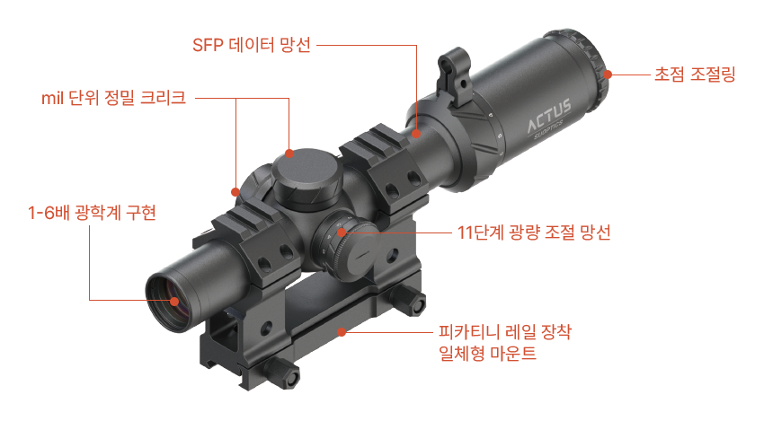 ACTUS ARKS16(1–6X24mm SFP)은 내구성과 정밀도를 기반으로 다양한 환경에서 전문 사용자의 요구를 충족하도록 설계 및 제작되었습니다. 가장 중요한 순간 정확한 사격을 제공할 것입니다.